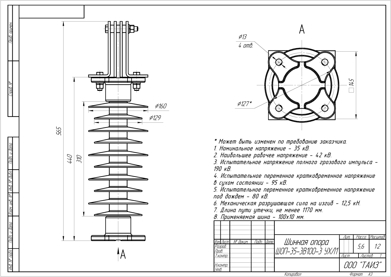 Главная » Продукция » Шинные опоры » Шинные опоры для жесткой ошиновки с вертикальными плоскими шинами » Шинные опоры для жесткой ошиновки 35 кВ » ШОП-35-3В100-3 УХЛ1