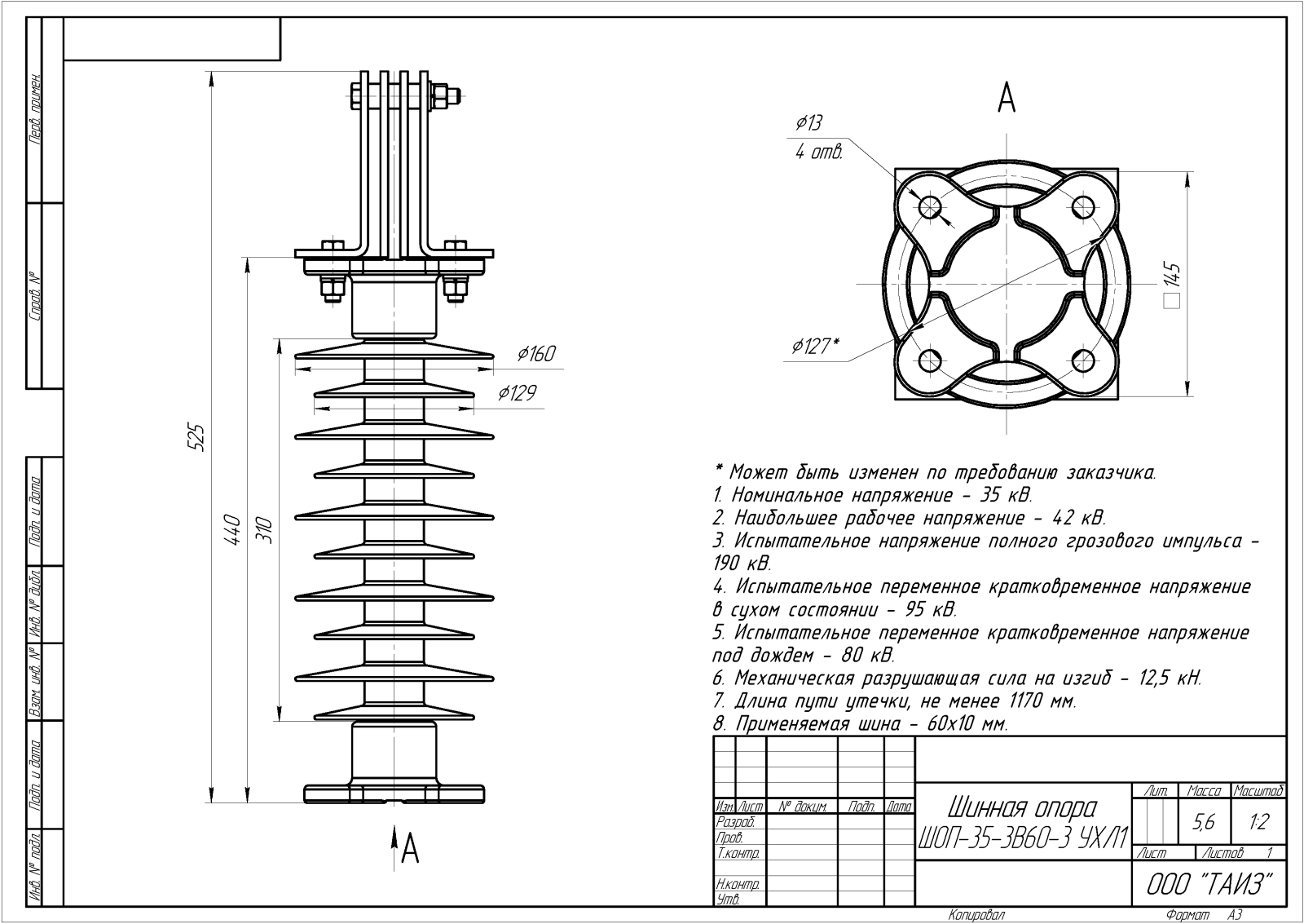 Главная » Продукция » Шинные опоры » Шинные опоры для жесткой ошиновки с вертикальными плоскими шинами » Шинные опоры для жесткой ошиновки 35 кВ » ШОП-35-3В60-3 УХЛ1