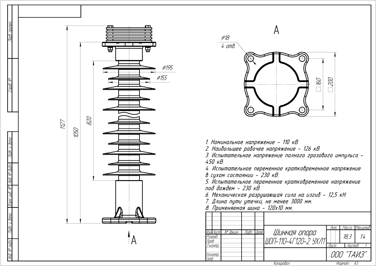 Главная » Продукция » Шинные опоры » Шинные опоры для жесткой ошиновки с горизонтальными плоскими шинами » Шинные опоры для жесткой ошиновки 110 кВ » ШОП-110-4Г120-2 УХЛ1