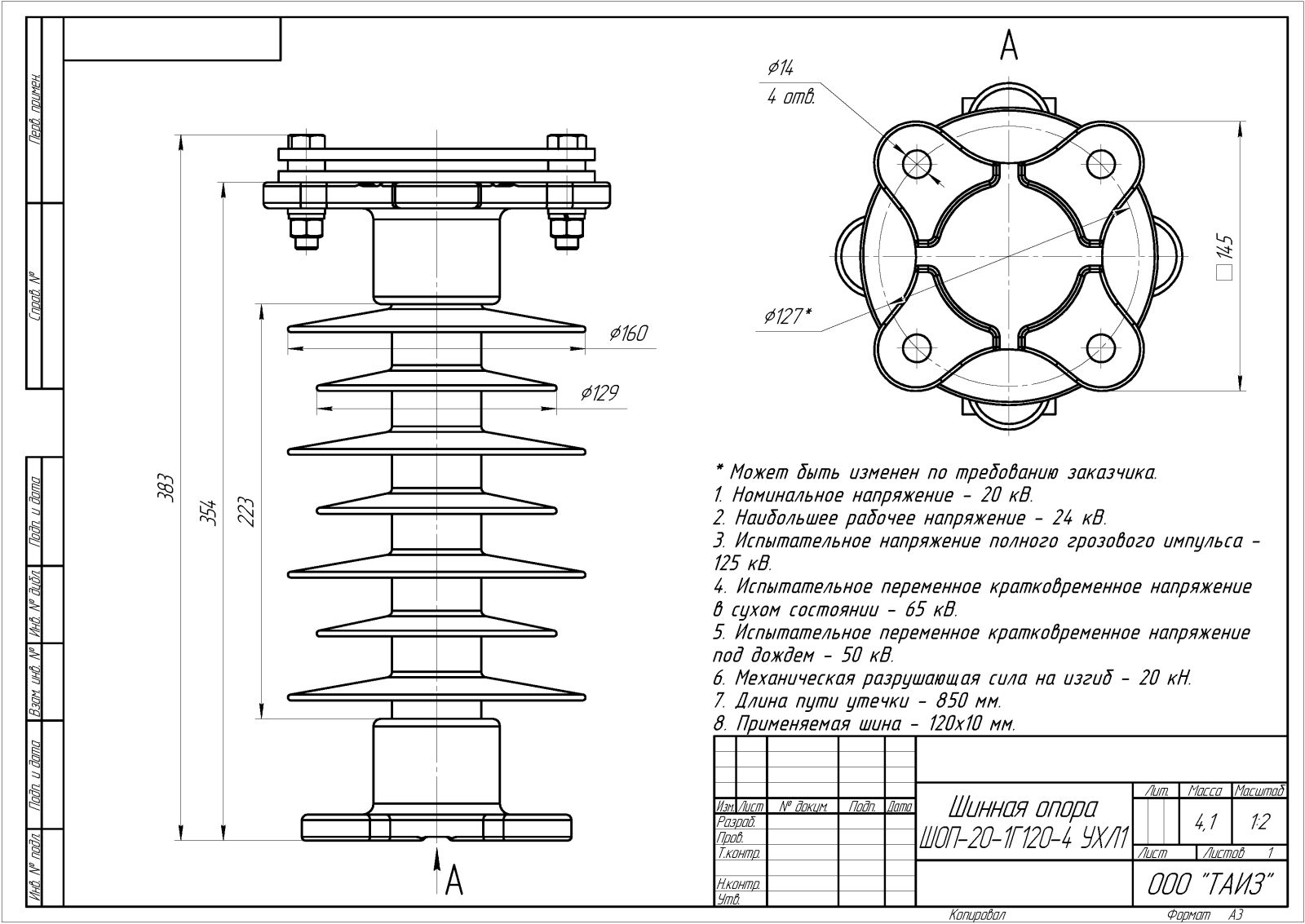 Главная » Продукция » Шинные опоры » Шинные опоры для жесткой ошиновки с горизонтальными плоскими шинами » Шинные опоры для жесткой ошиновки 20 кВ » ШОП-20-1Г120-4 УХЛ1