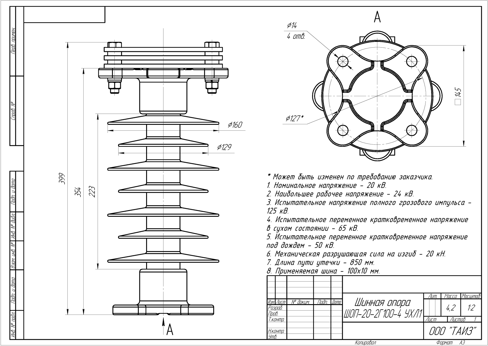 Главная » Продукция » Шинные опоры » Шинные опоры для жесткой ошиновки с горизонтальными плоскими шинами » Шинные опоры для жесткой ошиновки 20 кВ » ШОП-20-2Г100-4 УХЛ1