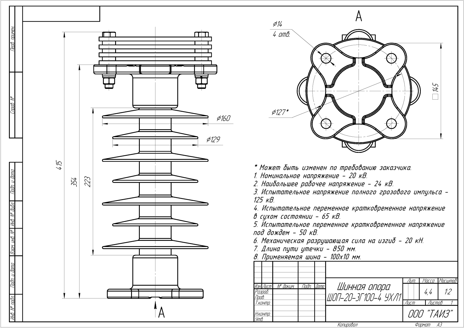 Главная » Продукция » Шинные опоры » Шинные опоры для жесткой ошиновки с горизонтальными плоскими шинами » Шинные опоры для жесткой ошиновки 20 кВ » ШОП-20-3Г100-4 УХЛ1