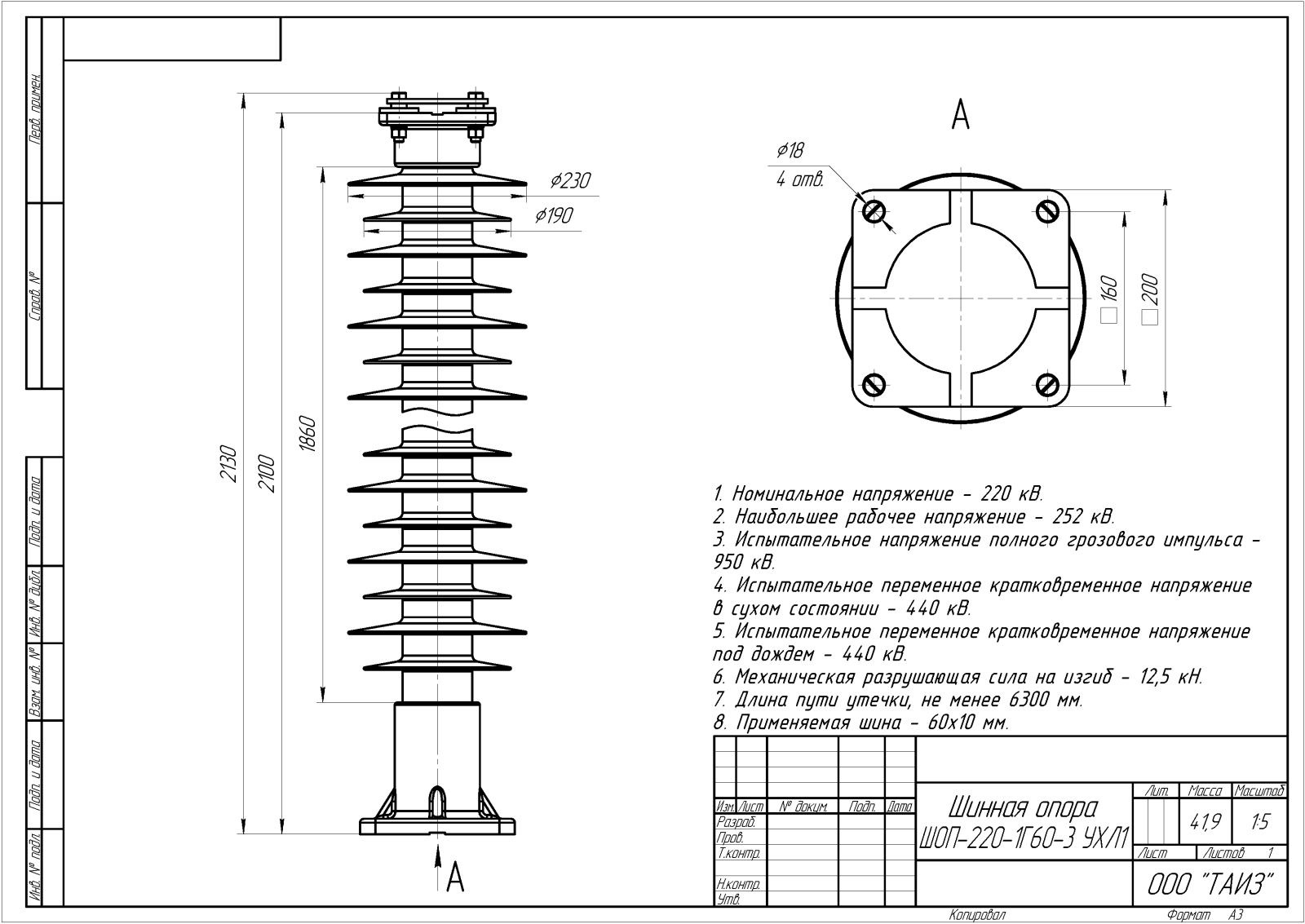Главная » Продукция » Шинные опоры » Шинные опоры для жесткой ошиновки с горизонтальными плоскими шинами » Шинные опоры для жесткой ошиновки 220 кВ » ШОП-220-1Г60-3 УХЛ1