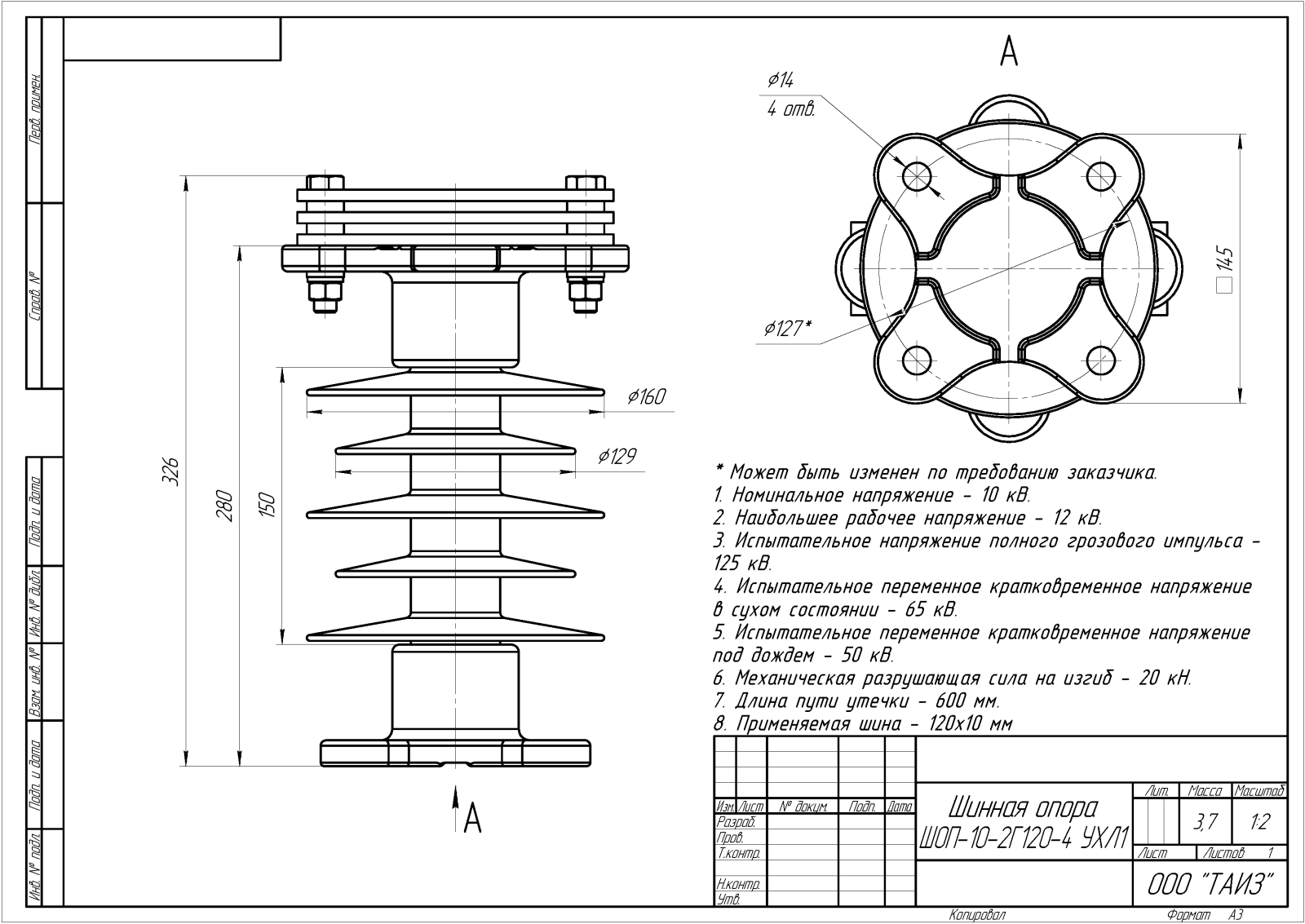 Главная » Продукция » Шинные опоры » Шинные опоры для жесткой ошиновки с горизонтальными плоскими шинами » Шинные опоры для жесткой ошиновки 6-10 кВ » ШОП-10-2Г120-4 УХЛ1